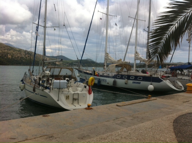 In banchina poche barche, pochissime, tra queste Mediterranea di Simone Perotti, che sta facendo un lungo giro per la  Grecia e che gentilmente mi prende le cime quando mi ormeggio proprio di fianco a lui. Poco dopo lo incontro di nuovo al bar, una birra ed un caffè insieme, lo lascio parlare, è un personaggio interessante, sicuramente uno che ha avuto il coraggio di fare una scelta di vita che spezza il vortice frenetico della vita metropolitana. Anch’io devo rallentare un po’, da quando sono partito non ho fatto che correre, in tutti i sensi.