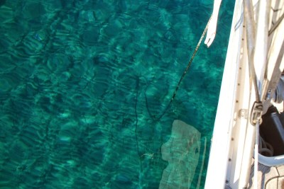 Ne approfitto quindi per cercare una secca a circa 50 metri di profondità, una sorta di cono che si erge da oltre 400 metri, segnata sulla carta proprio lungo la mia rotta. Ricerca infruttuosa, quando secondo il GPS sono sullo spot, l’ecoscandaglio segna ancora più di 100 metri e i cerchi che provo a descrivere sempre più larghi intorno al punto dove mi trovo, non sortiscono alcun risultato. Insomma, la secca non la trovo, forse è davvero piccola, chissà. Ho a traina una nuova esca, un bellissimo rapala che ho preso a Macinaggio, soprannominato il Roscio perchè è bianco con la testa tutta rossa; sostituisce Tigro, portato via dal grosso tonno che giorni fa per un pelo non sono riuscito a tirare a bordo. Capraia segna per me il ritorno in Italia, da mesi navigo in acque spagnole, francesi, portoghesi e africane, ora torno in patria e lo faccio, purtroppo, con apprensione; mi riferisco ad ormeggi portuali ed ancoraggi in rada. I fatti, purtroppo, confermeranno i miei timori.