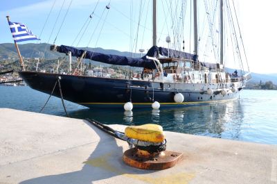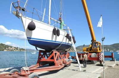 Un paio d’ore di volo, qualche fermata di metro, un veloce tragitto in aliscafo ed eccomi di nuovo a Poros: tanto rapidamente e dopo così pochi mesi che mi sembra di non essere mai andato via. Piazza Grande riposa sul suo invaso, con la carena pitturata di fresco e le murate tirate a lucido dalle mani di Takis; le stesse esperte mani che, manovrando una possente gru, la poseranno nuovamente in mare, il suo elemento naturale, quello per cui, più di vent’anni fa, è venuta al mondo.