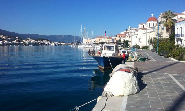 Il molo di Poros è piuttosto affollato; la Pasqua ortodossa, posticipata di una decina di giorni rispetto a quella cattolica, cade proprio in questo periodo e i greci pare facciano slittare la ripresa della vita lavorativa ben oltre la festività. Tantissimi i charter, molti dei quali popolati da russi: è Pasqua anche per loro e da quando la tensione politica internazionale gli sconsiglia di andare in Turchia, di cui erano assidui frequentatori, paiono ripiegare tutti sulla più amichevole Grecia. Lo dico senza mezzi termini: non sono contento quando me li trovo vicino. Bevono e schiamazzano fino a notte fonda in un misto di arroganza e menefreghismo che li rende poco compatibili con il mio modo di navigare, e quanto ad arte marinara sono decisamente pericolosi per sè e per gli altri. Un pomeriggio, un gruppo di questi, a bordo di un 50 piedi con la poppa larga quanto un motoscafo d’altura, cala l’àncora vicino alla mia e inizia ad avvicinarsi maldestramente da sopravvento, senza rendersi conto che con 20 nodi al traverso rischiano di schiantarsi sulla mia murata.