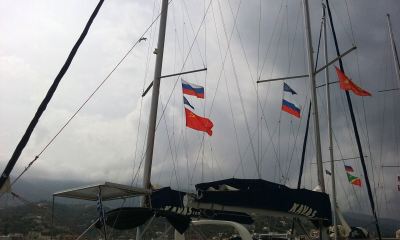 Le giornate scorrono tranquille, occupate dai lavori di riarmo. Ogni giorno si aggiunge un pezzetto, ogni giorno Piazza Grande riprende un po’ dell’aspetto che ha quando è pronta per navigare. Passo le drizze nell’albero là dove ho lasciato dei testimoni, ma uno di questi, probabilmente perché cotto dal sole, si spezza, costringendomi a tornare in testa d’albero per cercare di ripassarlo. Mi ci vogl‏iono parecchi tentativi con cime di spessore diverso prima di riuscire; la carta vincente è una cimetta molto fina cui ho appeso un piombo da pesca per farla scendere dentro la canalina dell’albero. Quando tutte le cime e le scotte sono tornate al loro posto, la coperta è tutta colorata, sembra addobbata a festa. O forse cerco io un pretesto per festeggiare con una birra!