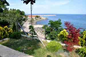 In città l’attrazione più interessante è il palazzo che negli anni Venti fece costruire la regina Marie, moglie di Ferdinando di Romania, quando questo tratto di costa apparteneva, appunto, al regno di Romania. Forse palazzo è un termine esagerato per una costruzione di queste dimensioni, è poco più di una villetta borghese, anche se è sicuramente interessante dal punto di vista architettonico, sopratutto per la piccola torre modellata sulla forma tipica dei minareti turchi e per il bellissimo giardino. Prima di tornare a bordo faccio un salto negli uffici della polizia di frontiera, nella speranza che ci sia un modo per non dovermi domattina spostare al loro molo, un colata di cemento corta e bassa contro cui lasciare facilmente le penne. Mi rispondono con estrema cortesia e disponibilità, ma non c’è nulla da fare: domani mi tocca la manovrina al cardiopalma. Nel frattempo i bar del porto si sono predisposti per la sera: i tavolini cominciano a riempirsi di gente che mangia, beve o tutte e due le cose insieme. L’attività mandibolare degli avventori è accompagnata dalla musica italiana d’antan, soprattutto Eros Ramazzotti e i Ricchi e poveri, un ascolto cui mi sottopongo malvolentieri, che ha però l’indubbio pregio di farmi andar via da qui senza troppi rimpianti. Punto la sveglia per domani, quando “sarà, sarà l’aurora“, e penso che forse, cara Bulgaria, se sono qui “sarà perché ti amo!“