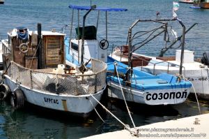 Una navigazione breve e tranquilla ci conduce a Sozopol, una delle città di questa zona che più mi interessano. Ci fermiamo davanti all’imboccatura del porto e ci gustiamo un meraviglioso tramonto prima di passare la notte all’ancora nella calma assoluta. La mattina successiva entriamo in porto, anzi in marina (è un marina!), ignorati, come al solito, sul VHF. C’è vento, non meno di una ventina di nodi, e senza qualcuno che mi prenda le cime non mi fido di manovrare. Fra l’altro non vorrei scegliere il posto sbagliato ed essere poi costretto a spostarmi. Dopo dieci minuti a zonzo fra i pontili, sbuca una tale che vuole che mi metta all’inglese in fondo a un budello dove, con questo vento, non uscirei se non tirato da un rimorchiatore. Declino l’offerta e gli indico invece una zona con parecchi posti liberi; mi fa segno che va bene e in pochi minuti siamo sistemati. Il marina è bello e curato ma meno caro di Tsarevo e il personale in ufficio parla un ottimo inglese; e soprattutto non canta i Pooh! Nella zona commerciale del porto stazionano alcuni pescherecci e un paio di motovedette, tanto vecchie e malandate che portano a chiedersi se la paura della capacità militare del Patto di Varsavia che avevamo trent’anni fa non fosse esagerata.