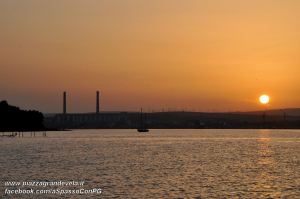 Alla fine trovo un angoletto dignitoso, dove si sente lo stormire delle fronde degli alberi sulla riva, e mi metto alla ruota. Il sole cala rosseggiando dietro le gru, dietro una ciminiera, dietro una piccola barca a vela alla fonda e dopo cena mi distendo in pozzetto a prendere il fresco. Dalla riva opposta della laguna arriva di tanto in tanto lo sferragliare di un treno che corre via, la cui sagoma vedo scorrere fra le tante luci della costa. C’è un senso di pace incredibile; è sparito il calore soffocante del giorno e alla sensazione di refrigerio contribuisce psicologicamente anche il leggero sciabordio dell’acqua sotto la chiglia. Acqua o quel che è.