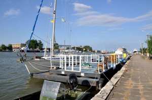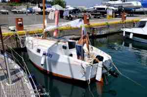 Provo a contattare l’Harbour Master nella speranza di avere indicazioni e supporto ma si ripete il solito copione e le mie chiamate sul VHF restano inascoltate. Un uomo, intanto, ha notato che mi aggiro un po’ sperduto e mi fa cenno di accostare ad un pontile galleggiante di ferro. Colgo al balzo l’offerta e con il suo aiuto e un po’ tensione per il rischio di fare danni seri, porto a termine l’operazione in modo indenne. Ho messo ovviamente tutti i parabordi che ho dal lato di accosto e ora li vedo tremendamente compressi perché il vento mi schiaccia davvero con forza contro il pontile: ho il reale timore che ne possa scoppiare qualcuno. Inoltre, l’intenso via vai di barchini, provoca continuamente onde e risacca e che fanno ballare Piazza Grande come una marionetta.