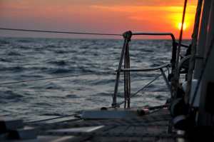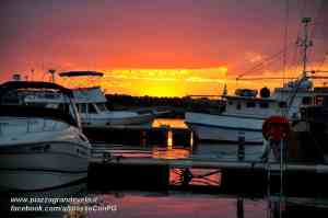 A sera, in porto, il sole ci regala uno spettacolo fantastico, infuocando il cielo e riflettendosi sulle nuvole che vanno addensandosi sopra di noi e che nella notte porteranno un po’ di pioggia.