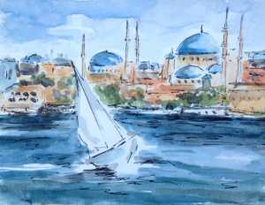 Sul diario di bordo annoto freddamente: ore sei, passato terzo ponte; ore otto, passato secondo ponte; ore otto e trenta, passato primo ponte. Come faccio a non essere freddo in una circostanza del genere? Amo Istanbul, passarci in mezzo così in fretta mi sembra quasi una profanazione, la violazione di chi ti ha regalato emozioni profonde e di cui ti ritrovi, tuo malgrado, ad abusare furtivamente. Quando sono al traverso di Santa Sofia ho un tuffo al cuore: l’anima mi sussurra di girare la prua e accostare verso un porto, fermarmi e urlare che nulla è cambiato, ma la mia mano resta salda sul timone e Piazza Grande mantiene la sua rotta; no, non è davvero il caso di rischiare, fermarsi è un’incognita troppo grande, almeno fino a quando la situazione non si chiarirà meglio. Avevo in programma una sosta di una settimana durante la quale avrebbero dovuto raggiungermi i miei figli: scappo invece via, restando con una sensazione di non sazietà che mi fa dire che devo tornare, è un impegno che prendo con me stesso. Quando entriamo nel Mar di Marmara mi volto ancora ad osservare quel profilo magico, fatto di cupole, minareti e grattacieli. Un vaporetto sta correndo da una sponda all’altra della città, sul ponte superiore un uomo si sporge dal parapetto e scruta il mare: un gabbiano volteggia un attimo sulla sua testa e poi se ne va. Come anch’io sto facendo in questo istante.