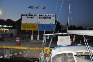 All’imboccatura del porto chiamo sul VHF, provando diversi canali ma senza ottenere alcuna risposta. Entro e dirigo verso il molo che il portolano indica per il diporto, un tratto di banchina dove sono ormeggiate un paio di piccole barche dall’aspetto vetusto e trasandato. Un uomo mi fa il cenno di alzare una trappa, quindi accosto di poppa e gli lancio le mie cime. Republic Bulgaria – Port Tsarevo, dice un enorme cartello in inglese e in bulgaro, ovvero in caratteri cirillici dato che qui si usa questo alfabeto. Dice pure qual è il canale che dovevo chiamare sul VHF, il 73: ancora una volta diverso da quello indicato dal portolano, ma avevo provato anche questo senza successo.