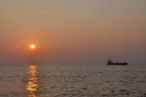 Alle quattro, dopo una navigazione decisamente tranquilla e spedita, accostiamo sulla dritta per dirigere nel canale. Poco dopo torna il segnale al telefono e ne approfitto immediatamente per tranquillizzare i tanti che purtroppo si stanno già impensierendo per questo silenzio durato parecchie ore. Quando siamo a pochissime miglia dal Bosforo, l’alba è ancora di là da venire, mentre la sagoma di una nave militare mi appare nitida subito a est dell’ingresso. Siamo ormai nel risucchio della corrente, presi nel suo vortice che come un imbuto tutto convoglia dentro di sé. Abbiamo ormai solo un piccolo pezzo di genoa aperto e malgrado ciò facciamo quasi tre nodi. Alle nostre spalle, intanto, il castelletto di prua di un enorme cargo si fa sempre più prossimo alla poppa di Piazza Grande, sempre più minaccioso.