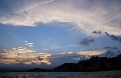 Nel tardo pomeriggio, fa a volte capolino qualche diportista con l’aria quasi sperduta: cala l’ancora nel mezzo del canale, fra l’isola e la terraferma, poi si accosta con la poppa fino a giungere a portata di mano per porgere le cime a me o a qualcuno degli irriducibili velisti che ancora popolano questo luogo e che, com’è prassi, non manca mai di aiutare chi deve ormeggiarsi. Sono qui da alcune settimane, un tempo così lungo che sulla catena dell’ancora è inziata a crescere la vegetazione, come sulle carene non adeguatamente trattate. La sera, salgo a volte in cima alla collina dove svetta la torre dell’orologio, per godere della vista del golfo quando il cielo vira al rosso, prima di farsi scuro e aggiungere quiete alla quiete. La stagione è eccezionalmete mite: di giorno si sta ancora in costume e prima di dormire, ma non sempre è necessario, basta stemperare un poco l’aria della cabina con la stufetta per starsene bene al caldo. È una fortuna, perché, quando inizia il freddo vero, vivere su una barca delle dimensioni di Piazza Grande diventa piuttosto scomodo. A parte l’umidità, difficilmente eliminabile da una cubatura così ridotta, ci si ritrova costretti sottocoperta, privati di tutto lo spazio esterno di cui si gode in estate, reso invivibile dal clima. Invece, faccio ancora la doccia in pozzetto – con l’acqua riscaldata dal boiler ma la faccio – assaporando gli ultimi brandelli di quella vita da zingaro di mare che da qualche anno ho sposato, mentre ultimo i preparativi per tornare a casa.