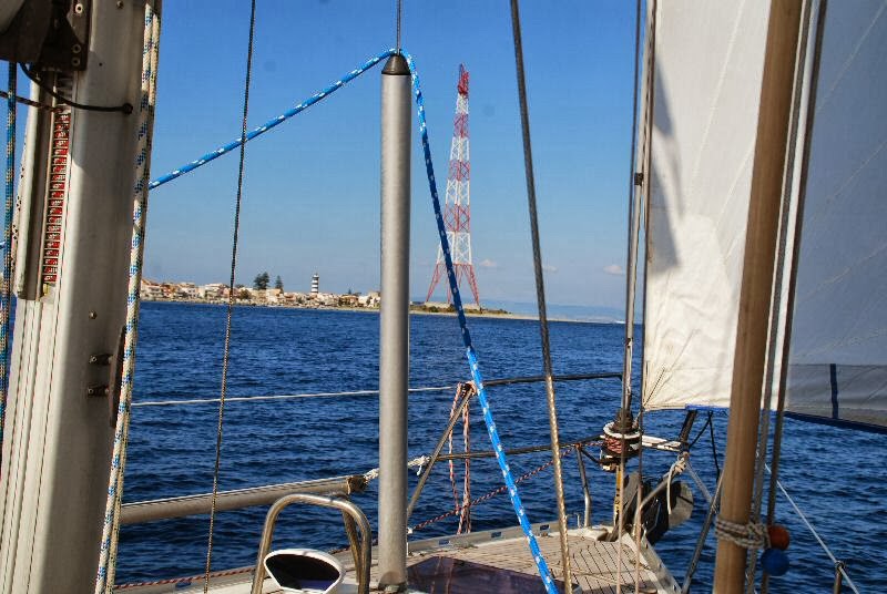 Mano mano che ci avviciniamo allo Stretto di Messina, il vento riprende a soffiare con sempre maggior forza, ovviamente lungo il senso del canale, costringendoci quindi a bordeggiare. Siamo partiti di bolina, abbiamo traversato di bolina, arriviamo di bolina. La bolina è bellissima a patto di avere mare piatto e massimo quindici nodi di vento, nonché di protrarla per non più di poche ore. In mancanza di anche una sola di queste caratteristiche, la bolina è una discreta seccatura. Dato che non abbiamo alternative, ci mettiamo di buzzo buono, come si dice a Roma, e lemme lemme, come si dice credo dappertutto, ci avviciniamo a Reggio Calabria. L’idea è di fare tappa qui, passare la notte in tranquillità e l’indomani entrare in Mar Tirreno. L’alternativa sarebbe Messina, c’è un bel marina, nuovo e ben gestito, che però ha due difetti: si balla al passaggio dei traghetti e costa, ed io in Grecia ho sviluppato una terribile allergia al pagamento dell’ormeggio. Il porto di Reggio, invece, è brutto, puzza di fogna in modo indicibile ed ha una banchina altissima per una barca da diporto, però l’anno scorso ci sono stato gratis, quindi è su di esso che a furor di equipaggio cade la scelta. Entriamo, avvertiamo la CP che ci dice di metterci sul molo di ponente che però è pieno di barchini, allora andiamo su quello di levante, banchinato a misura di transatlantico e grazie ad uno scandinavo ormeggiato che gentilmente ci prende le cime riusciamo ad ormeggiarci anche noi. Rispetto all’anno scorso il porto di Reggio Calabria è ancora più brutto e puzzolente, c’è una risacca terribile che ci impedirebbe di dormire senza il rischio di sfracellarci sulla banchina, guardo Andrea e gli dico: ma ce l’ha ordinato il dottore? Bye bye scandinavo, non siamo scemi che ti abbiamo scomodato per poi ripartire dopo dieci minuti, è che purtroppo qui proprio non si può stare.