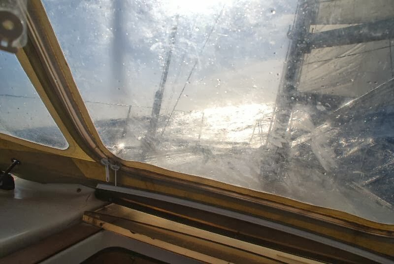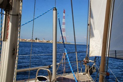 La giornata trascorre tutta così, si balla parecchio, non si può fare molto, anche mangiare costringe a contorsionismi piuttosto complessi ed inoltre la tensione muscolare necessaria a mantenersi dritti non è un toccasana per l’appetito. Spizzichiamo un po’ di salamino, qualche prugna, gli immancabili taralli, la cui scorta è stata nei mesi rimpinguata dagli ospiti che si sono succeduti a bordo. Nutriamo invece lo spirito, grazie allo strabiliante spettacolo di natura viva che viene offerto a nostro esclusivo consumo. Già, ci siamo solo noi a goderne, in giro non si vede anima viva, credo che le navi che si muovono tra Messina e Corinto seguano una rotta più meridionale della nostra. Solo ieri sera abbiamo incrociato una nave, ne vedevamo le luci, un po’ strane fra l’altro, c’erano due fanali rossi a poppa, ma non appariva sull’AIS, lo strumento che segnala la posizione di tutte le unità commerciali. Infatti questa non era commerciale ma militare, lo desumiamo dalla sagoma nera che ci scorre veramente a pochi metri dalla prua, metri resi pochi dalla decisa poggiata che do quando appare chiaro che dalla plancia di comando se ne stanno fregando altamente di noi. Certo che almeno una voce sul VHF potevano darcela, dice Andrea che di queste cose se ne intende per ragioni professionali. Noi siamo regolarmente in ascolto sul canale 16 ma nè questo, nè l’AIS sono serviti a scongiurare una collisione, anzi uno speronamento di elefante contro una formica, quanto invece ha fatto l’intervento umano. Insomma, l’elettronica aiuta, ma un occhio conviene sempre buttarlo.