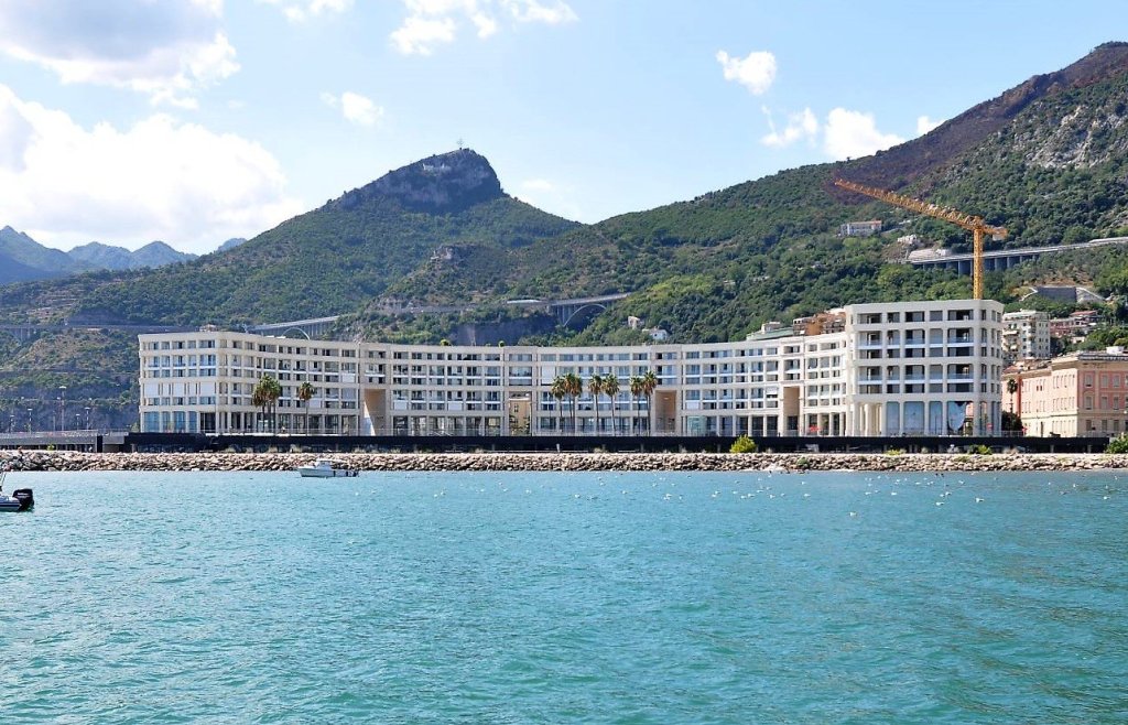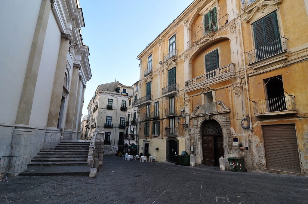 Per trovare un po’ di quiete ce ne andiamo a Salerno. Se c’è una cosa che mi piace è arrivare in barca nelle grandi città. Intendiamoci, non che non mi piacciano i porticcioli pittoreschi delle isolette (stile Grecia, per capirsi), ma entrare in una grande città che magari trasuda storia da ognuno dei palazzi che compongono la linea di edifici del fronte mare ha un fascino per me incomparabile. A Salerno sono già stato tanti anni fa, con la barca precedente, e tornarci non fa che rinnovare il ricordo piacevole che ne avevo. Il centro storico oltre che molto bello è davvero ben tenuto; pulito, curato, ordinato ma non per questo non vissuto. Verace anche lui. Peccato solo per l’orribile costruzione a esedra, eretta recentemente proprio sul porto commerciale e non ancora ultimata: sproporzionata rispetto agli edifici circostanti, non ha uno stile compatibile con le costruzioni preesistenti; anzi, non ha proprio uno stile, e le colonne che la adornano su tutti i piani appaiono grossolane quanto inutili, sia funzionalmente che esteticamente.