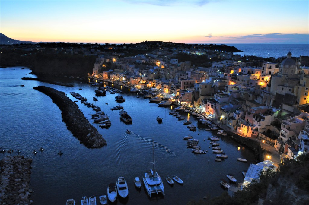 Volendo definire Procida con un solo termine, direi verace. A differenza di quasi tutte le altre piccole isole italiane non si è trasformata in un’industria per il turismo di lusso ma conserva quei tratti paesani che solo nell’entroterra continentale si riescono a volte ancora a trovare. Alcuni angoli, poi, fatti di piccoli archi e vicoli a gradini, rasentano l’iconografia immaginaria della marina dove, prima o poi, ci si aspetta sbarchino i Turchi annunciati dal suono a distesa delle campane. A sventolare sulle teste dei turisti, i panni stesi alle finestre: una delle immagini più belle da vedere nei centri storici ormai tutti invasi dalle insegne dei marchi internazionali dell’alta moda. Il porto è un salasso: 130 euro per una notte. Ma c’è mio figlio a bordo, ci tengo a fargli vedere l’isola. Alla Corricella si commuove anche lui di fronte a tanta bellezza: qui era il bar di Troisi nel film Il postino (la casa, invece, era a Salina). Assaggiamo le lingue di Procida, un dolce da colazione a base di crema pasticcera: niente male davvero