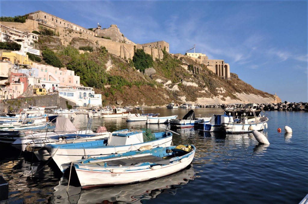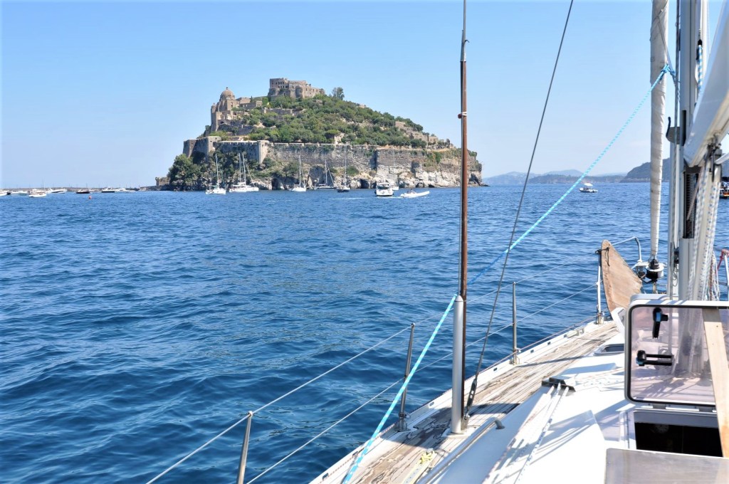 Ci spostiamo verso sud, facendo tappa a Torre del Greco. Sono stato diverse volte a Napoli, anche in barca, ma non conosco nessuna delle cittadine della fascia costiera, per questo accolgo con favore la disponibilità di un’amica, ospite in passato di Piazza Grande, a trovarci un posto in porto. Una sosta utile anche per fare cambusa e rifornimento di acqua. La città non si può certo definire bella ma, come un po’ in tutta la zona, la carica di umanità e simpatia delle persone fa passare in secondo piano il degrado e la sporcizia (anche se venendo da Roma non sono nella posizione più adatta a notare certe cose). Che il posto non sia proprio tranquillo lo attesta anche la curiosa abitudine di proteggere i citofoni con una grata di ferro. Mangio uno dei più buoni casatielli della mia vita che aggiunge una grassa tessera al mosaico adiposo che si va componendo sul mio addome. Ma d’altra parte, l’eterno dubbio resta irrisolto: meglio essere magri o felici? Ci penso su spalmando di alici il tipico pane torrese a base di grano duro, secondo la ricetta locale. Poi molliamo le cime alla volta dell’isola più bella del Tirreno e forse d’Italia (insieme a Pantelleria).