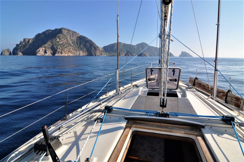 A Ponza, impossibile trovare un posto al pontile: ma con quei prezzi, se pure fosse… Per fortuna c’è Khaled, che per dieci euro fa il taxi-boat con le barche alla fonda al Frontone, la spiaggia vicino al porto. Puntuale, efficiente, cortese, offre un servizio utile che permette, a chi lo desidera, di fare comunque due passi a terra. E, sempre per fortuna, Piazza Grande ha due pannelli solari che nelle giornate estive erogano quasi 1 kWh al giorno, consentendo ai servizi di bordo di funzionare regolarmente senza la necessità di andare in banchina per ricaricare dalla rete elettrica; alla faccia di Putin! Sempre belle le Pontine, ed effettivamente noto meno barche del solito per il periodo. Certo, il via vai di gommoni e barchini è quello consueto ma alle sette di sera fanno tutti ritorno in porto restituendo quiete alle rade che spesso impestano con il loro rumoroso sciamare, apparentemente vacuo e senza meta. Non trovo però un po’ di refrigerante sollievo: anche se le temperature la sera calano, la barca restituisce nella notte il calore accumulato durante il giorno rendendo poco confortevole il riposo notturno. Per dare un’idea: di giorno le stoviglie riposte negli stipetti sono calde al tatto; mai successo prima di quest’anno.