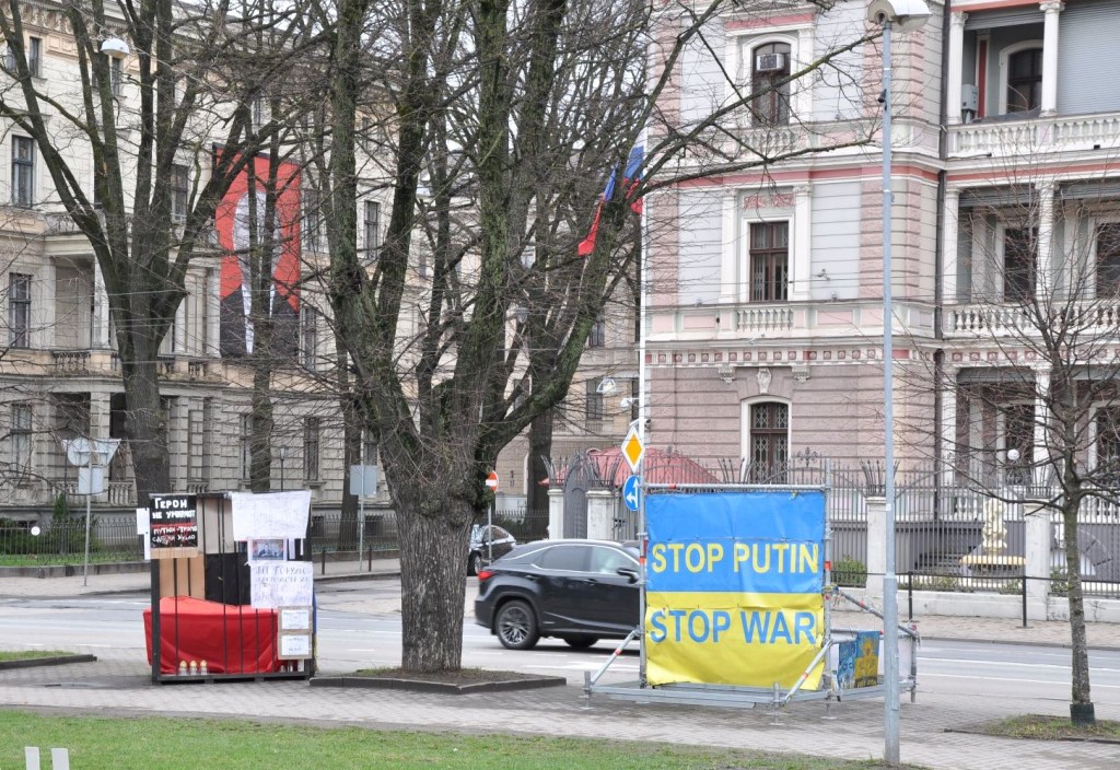 Sulla facciata di un elegante palazzo sito proprio di fronte all’ambasciata russa è appesa una gigantografia di Putin il cui volto sfuma in un teschio che simboleggia la morte. Il messaggio, alto almeno una decina di metri, non potrebbe essere più chiaro, soprattutto perché pronunciato da chi conosce bene il suo vicino per averne già sperimentato l’abbraccio mortale, costato centinaia di migliaia di deportati nei gulag siberiani, imposizione del bilinguismo e repressione della cultura lettone oltre che repressione poliziesca e militare.
